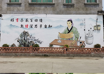 溫州市墨客墻繪藝術有限公司主要從事有個性有創(chuàng)意的家居裝飾墻繪、幼兒園卡通彩繪、KTV酒吧主題墻繪、3D立體墻繪、習哥彭姐文化大革命的城鄉(xiāng)文化宣傳墻繪等,當然還有我們獨歩武林的高墻墻繪藝術!畫高墻有時一個頭像就有兩米,不僅僅是大了型不好把握,一般習慣在陸地作戰(zhàn)的繪畫者往往上去后會讓你唱起一首歌:“三月里的小雨,淅瀝瀝瀝......瀝瀝……淅瀝瀝瀝下個不?!本褪谴魃夏虿粷?,他們也會在上面演示帕金森。我們施工時下面觀看的人如少女初戀般心跳,欣賞的人似紂王品酒觀妲己跳舞一樣陶醉。連村中惡犬也為我們搖尾吶喊:“……墨客墻繪……神勇無畏!